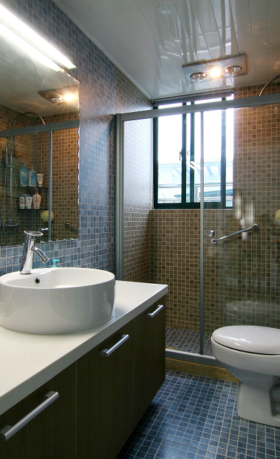 衛(wèi)生間內(nèi)采用了大量的混凝土色瓷磚,白色的洗漱臺再加上很少見的黑色馬桶,整個空間都顯示出了一種高級感,淋浴房內(nèi)還設(shè)計了小壁龕,收納的同時還不會占用空間,是小空間的最佳選擇!