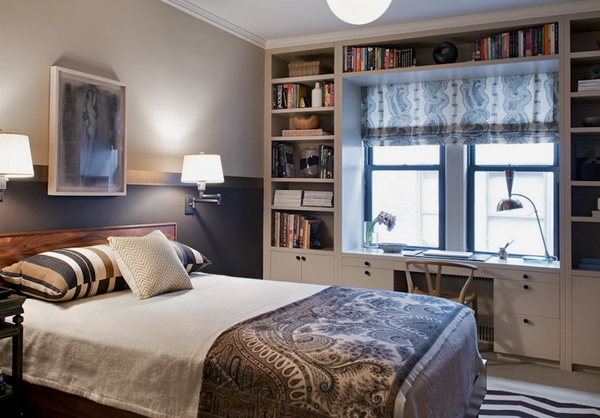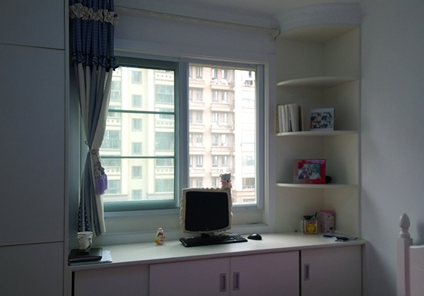 臥室的飄窗上裝上簡單的柜子,形成最簡單的書桌形式,要是心血來潮,還是可以坐上書桌發(fā)發(fā)呆的。